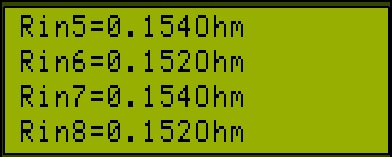 Для измерения внутренних сопротивлений нажать SW4, затем включить режим измерения ёмкости. На рис. слева ниже показаны внутренние сопротивления аккумуляторов В1 - В4, на рис справа - аккумуляторов В5 -В8. Режимы индикации переключаются кнопкой SW2.