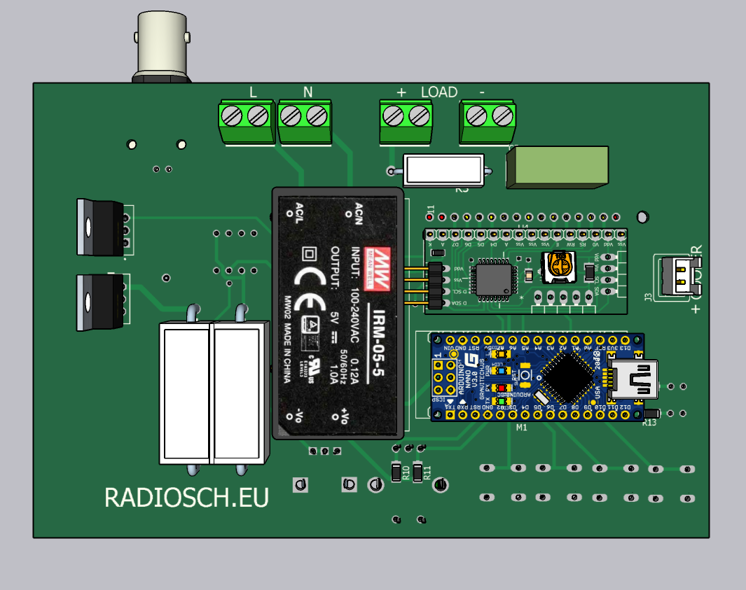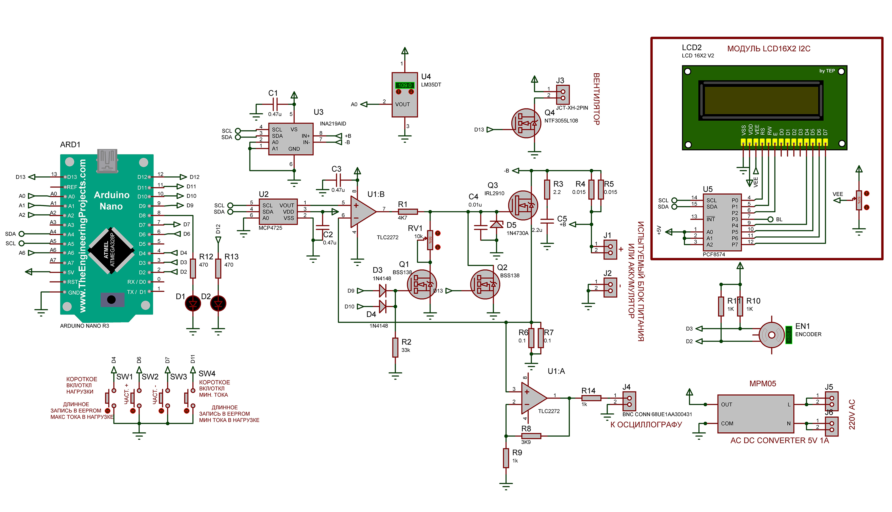 Ниже представлена схема динамической электронной нагрузки на Ардуино Нано.