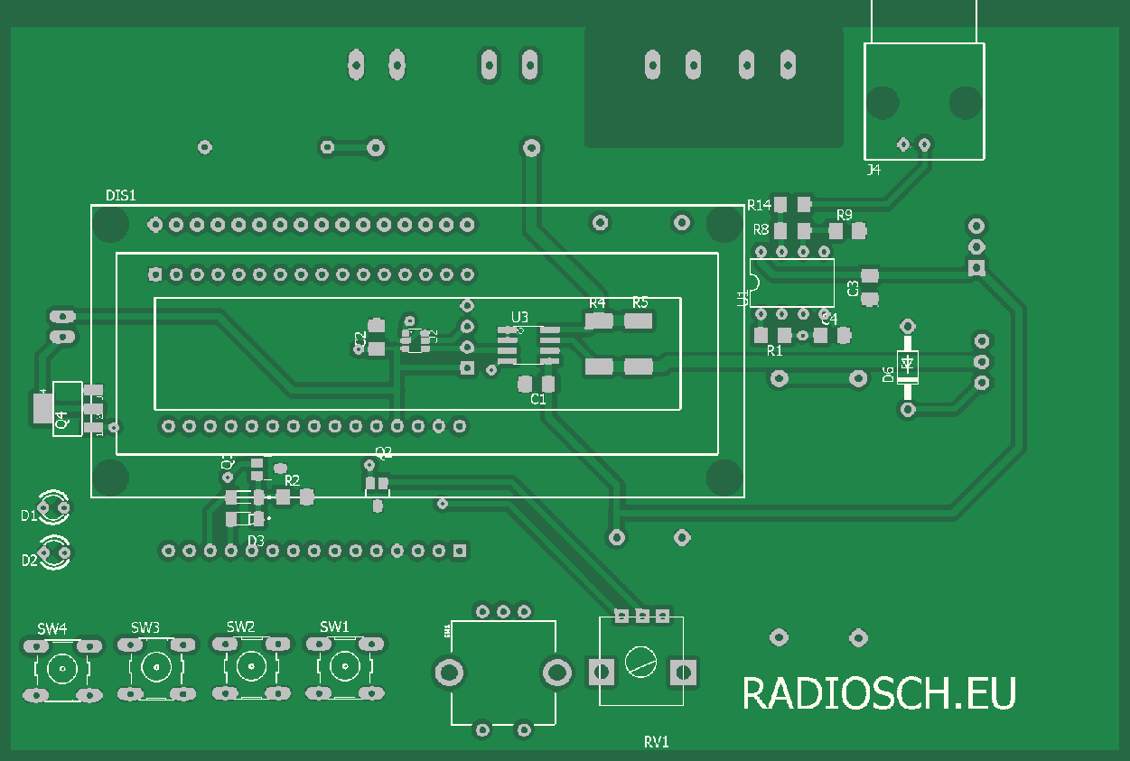Максимальное значение тока устанавливается с помощью энкодера. Для записи в EEPROM удерживать SW1 до включения светодиода D1. Для установки минимального тока кротковременно нажать SW4. Значение минимальноготока устанавливается переменным резистором RV1. Для записи в EEPROM минимального значения тока удерживать SW4 до включения светодиода D2. Выключить питание.