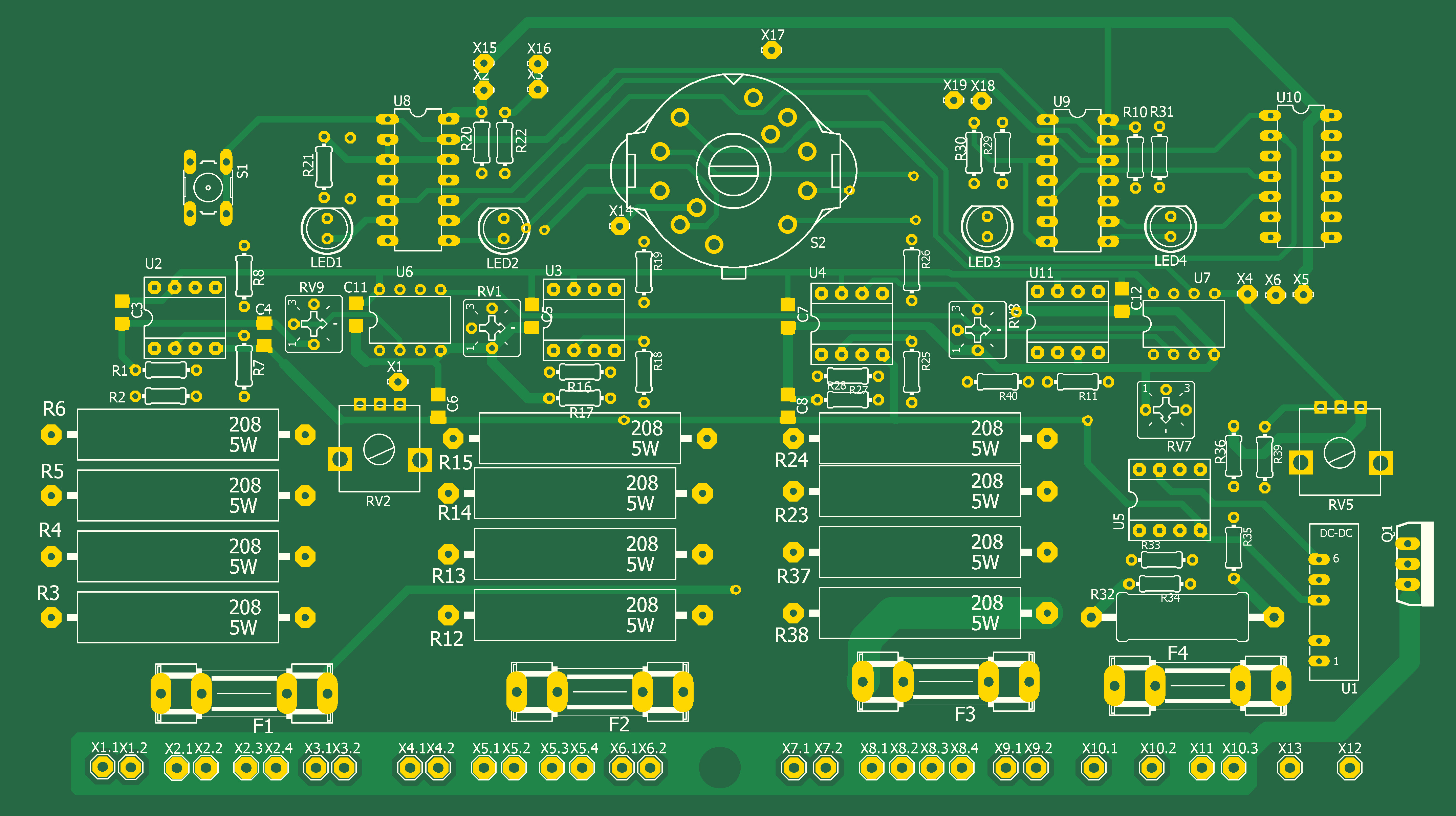 Светодиоды LED1...LED4 служат для индикации выхода, в котором произошла перегрузка по току.