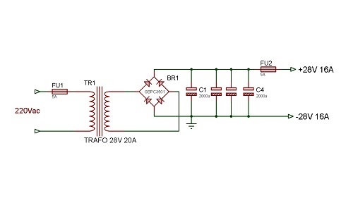 Лучше применить импульсный источник с выходным напряжением 27В и мощностью 500вт. По цене примерно также как и вышеупомянутый с понижающим трансформатором, но вес легче и к.п.д. устройства выше.
