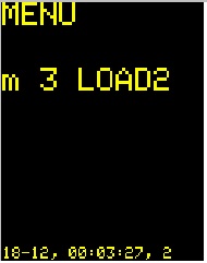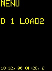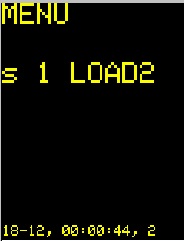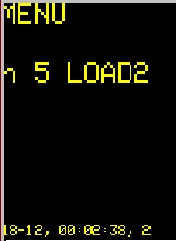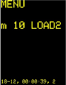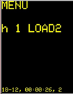 Для установки времени включения и выключения нагрузки кнопкой DISP+ включить режим меню и нажатием одной из кнопок LOAD1 - LOAD12 установить нагрузку для которой необходимо установить время. На картинках ниже приведен пример установки времени для LOAD2