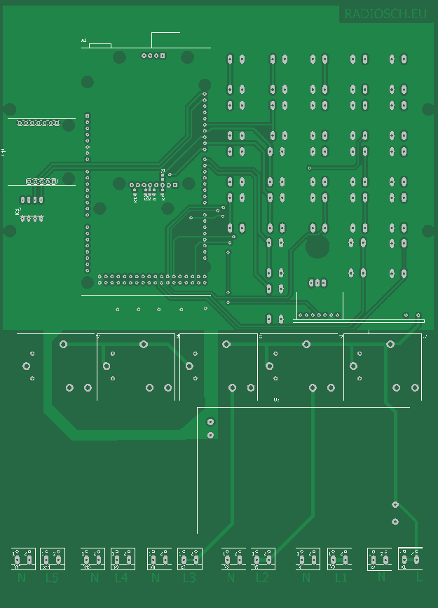Модуль удаленного включения нагрузки выполнен на Ардуино Нано. Номер включенного джампера соответствует номеру нагрузки. При включенной нагрузке включается светодиод D1. Каждый модуль питается от AC DC конвертора МРМ-0.5 5В 1А.