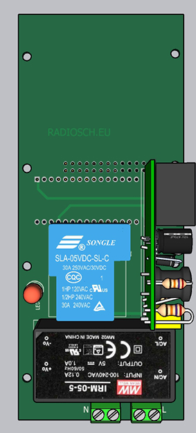 В качестве источника питания применен AC DC конвертер IRM90 12B. Модуль KQ130F питается от стабилизатора U7 типа 7805.