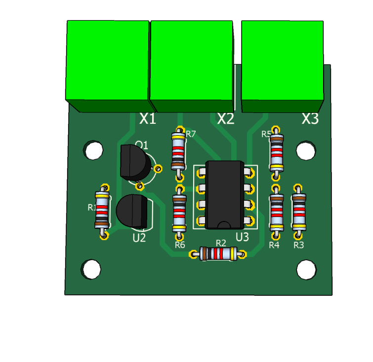 Выносная плата подключается к термостату с помощью экранированного кабеля с витой парой. Это по зволяет подавлять синфазные помехи. Длина кабеля до 8-ми метров. При температурах от -40 до 0 °C напряжение на выходе выносной платы -4В - 0В, при температупах 0 - 140 °C от 0 до 14В . Схема работает аналогично предыдущей, с той разнице, что для индикации отрицательных температур применяются диодный мпст на диодах Шоттки D1 - D4 , для индикации порогов вулючения и выелючения нагревателя - диодный мпст на диодах Шоттки D5 - D8. При отрицательных температурах включаются сетодиодц D9, D10 и D13,D14 Питание с помощью AC DC конвертера IRM-05-15 с выыходным напряжением 15В и током 300мА.