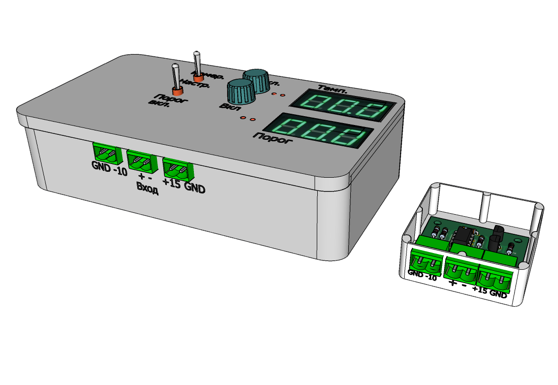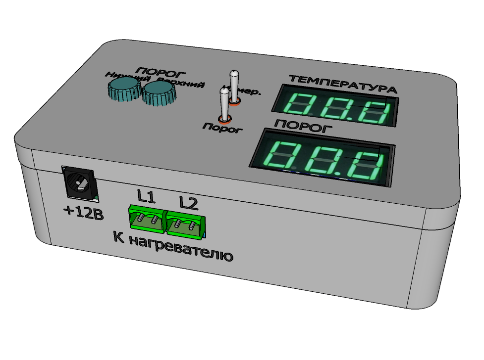 Для индикации температуры и порогов включения и выключения нагревателей применяются модули 7-ми сегментных вольтметров.